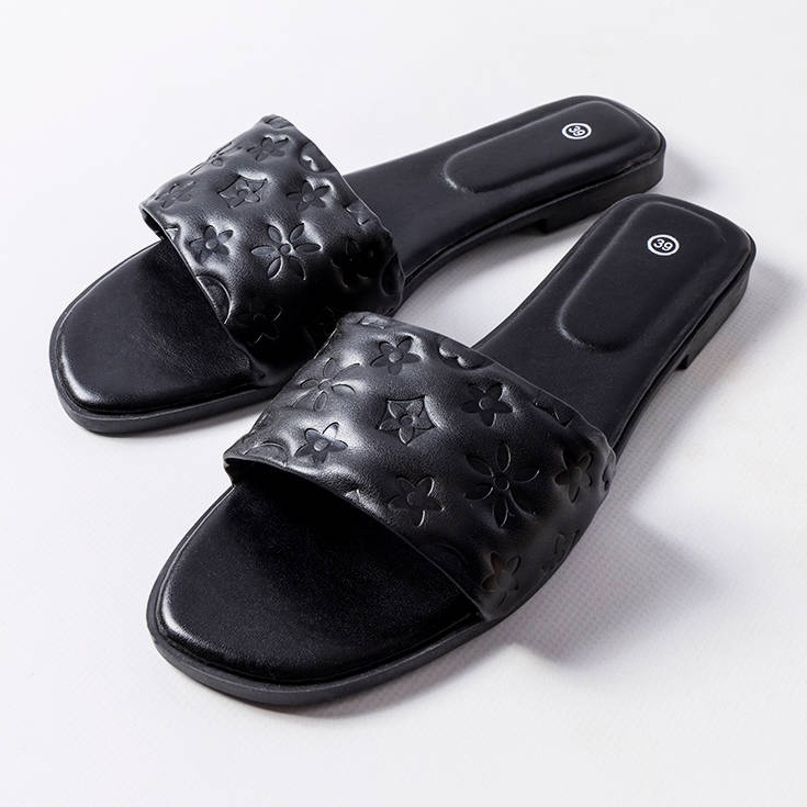 Czarne płaskie klapki Amalie — lekkie i eleganckie na lato