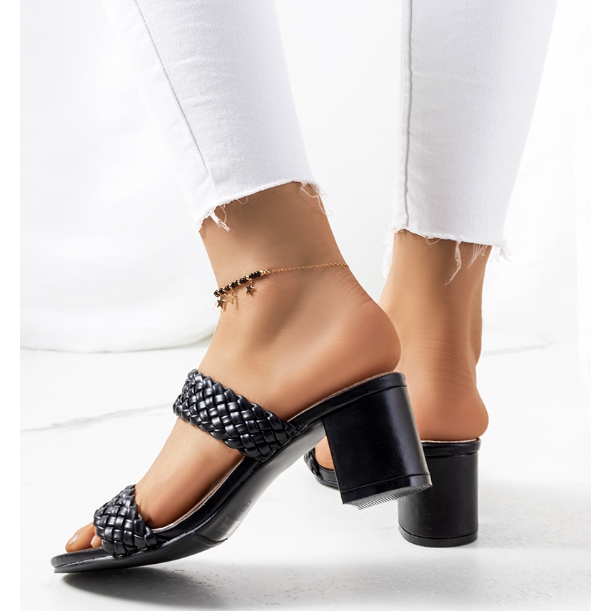 Szczegóły: Czarne plecione klapki na słupku