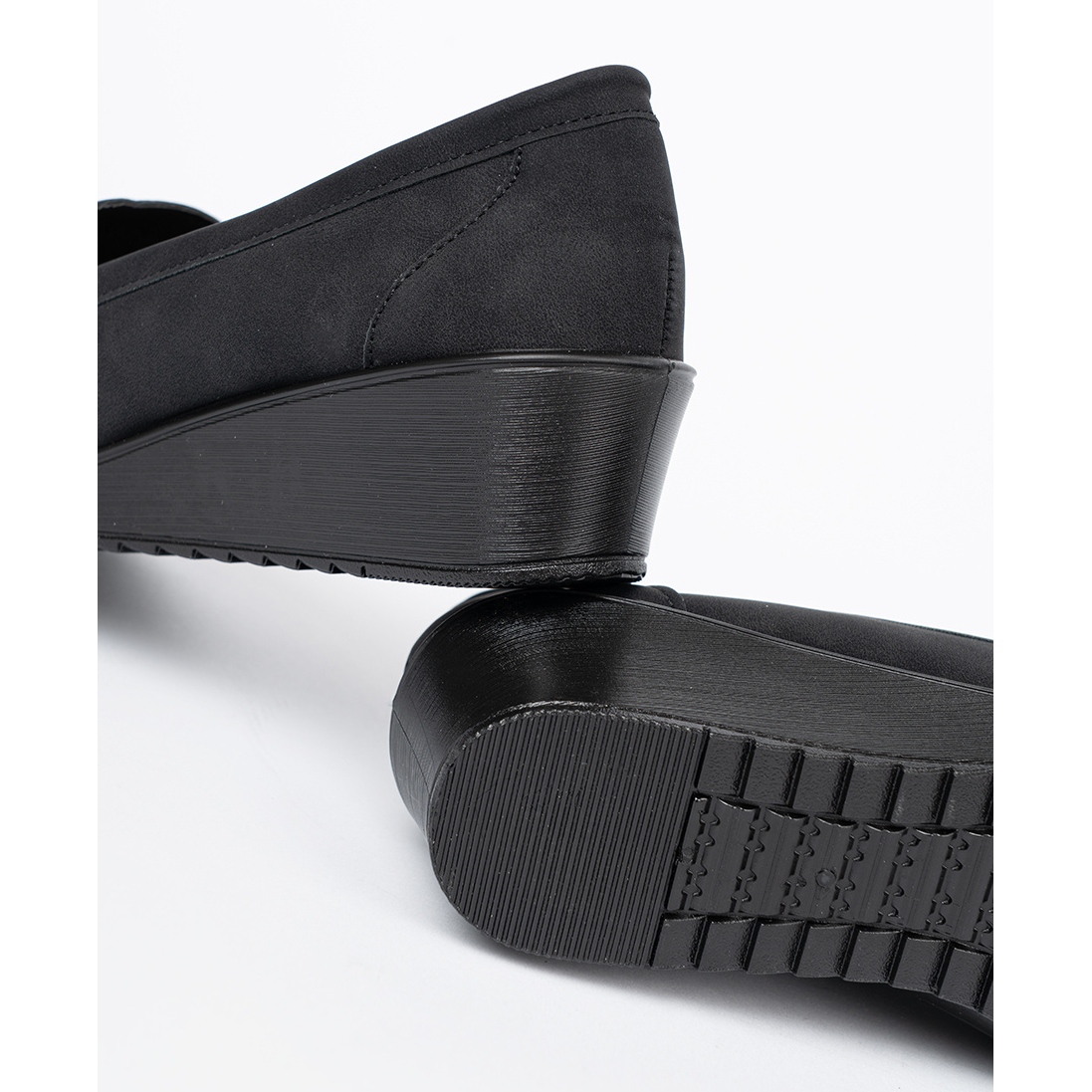 Shelvt Shelvt Czarne półbuty na koturnie z ozdobą