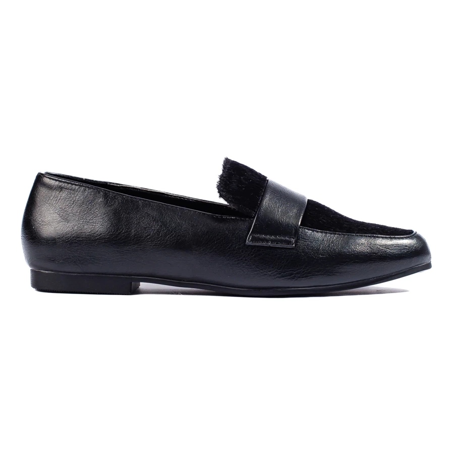 Eleganckie i jednocześnie wygodne mokasyny damskie w kolorze black, ozdobione miękkim futerkiem. Idealne na co dzień i na uroczyste okazje — łączą casualowy charakter z modnym, kobiecym akcentem.