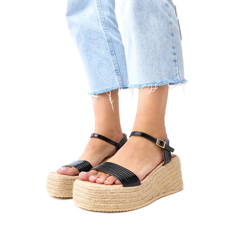 Szczegóły: Czarne sandały espadryle na platformie Solora