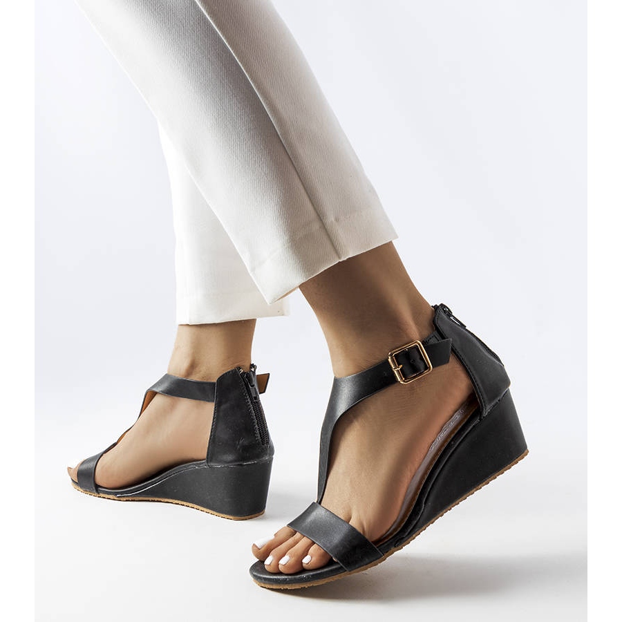 Szczegóły: Czarne sandały na koturnie Durepos