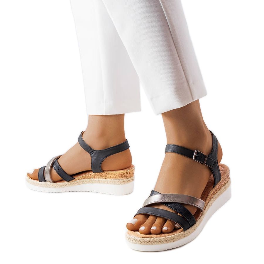 Szczegóły: Czarne sandały na koturnie Ridenour