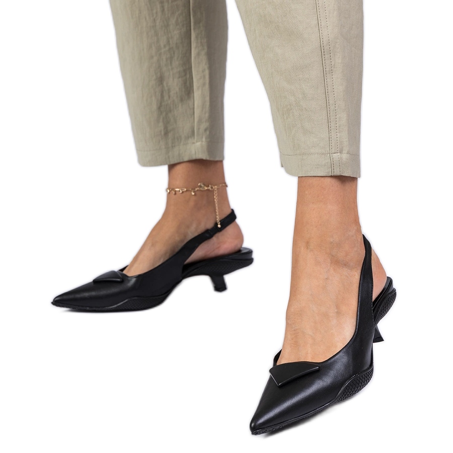 Inna marka Czarne sandały na niskim obcasie Gougeon