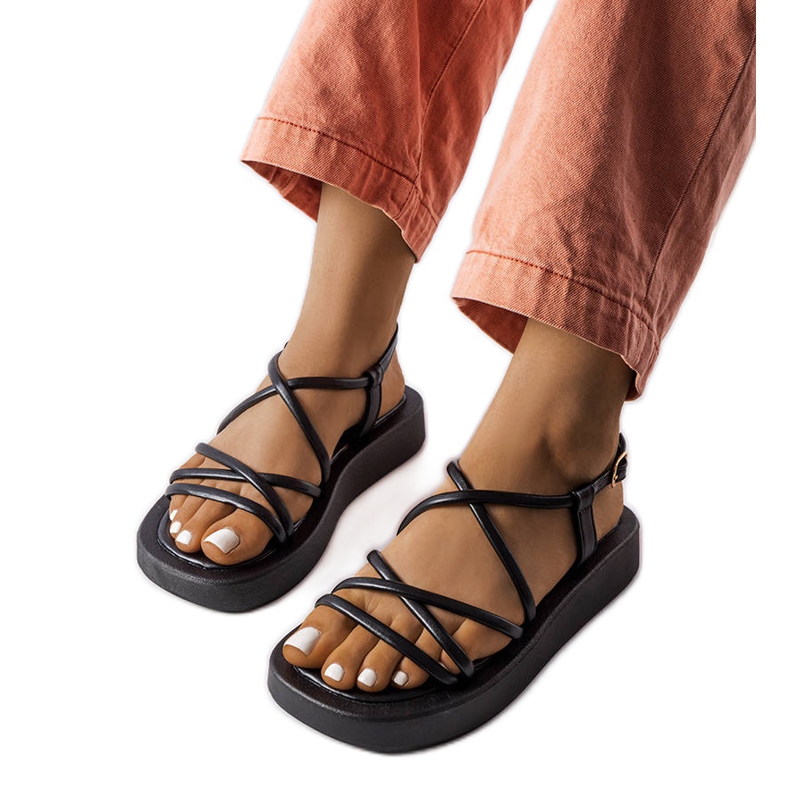 Sandały zostały zaprojektowane z myślą o prostocie i wygodzie – zapięcie na sprzączkę pozwala na łatwe zakładanie i zdejmowanie, a ich niska wysokość sprawia, że są niezwykle komfortowe w codziennym użytkowaniu. Dzięki klasycznemu czarnemu kolorowi, te sandały świetnie komponują się z różnorodnymi stylizacjami, dodając im eleganckiego akcentu.