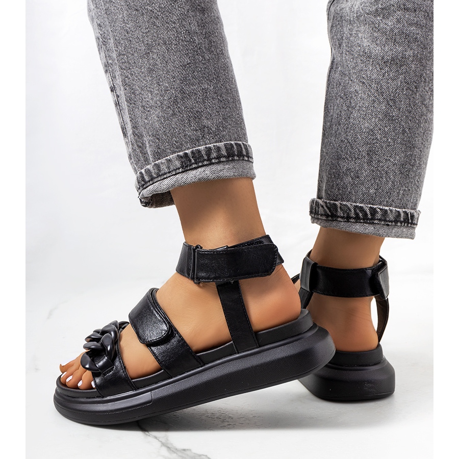 Czarne sandały na platformie Zepps to doskonały wybór na letnie dni, które wspaniale wzbogacą każdą stylizację. Wykonane z wysokiej jakości skóry ekologicznej, te buty zapewniają nie tylko elegancki wygląd, ale również wygodę noszenia przez cały dzień. Dzięki funkcjonalnemu zapięciu na rzep, zakładanie i zdejmowanie sandałów stało się niezwykle proste i szybkie, co z pewnością doceni każda aktywna kobieta.