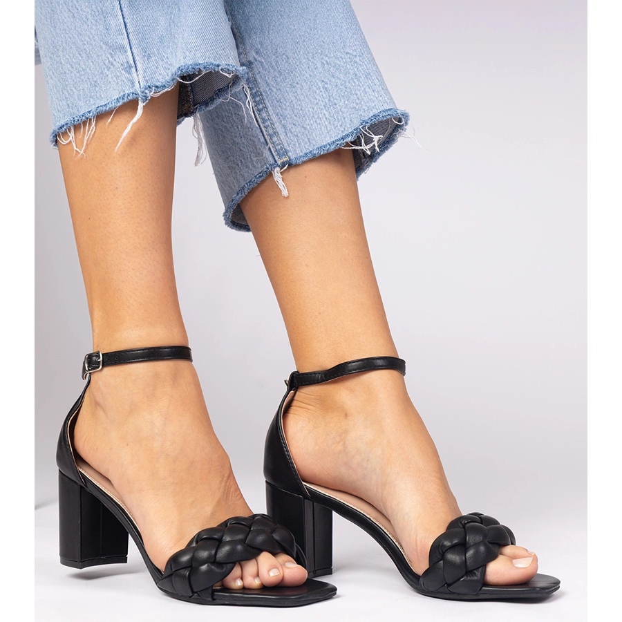 Inna marka Czarne sandały na słupku zakrytą pietą