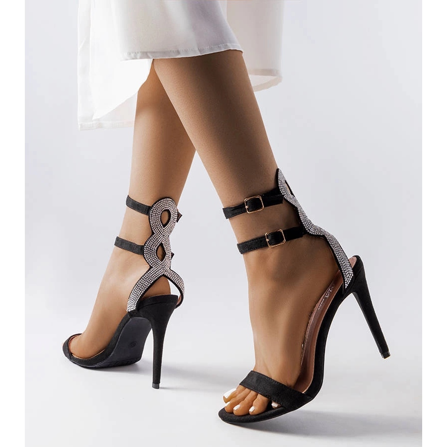 inna Inna Czarne sandały na szpilce z cyrkoniami Actameia