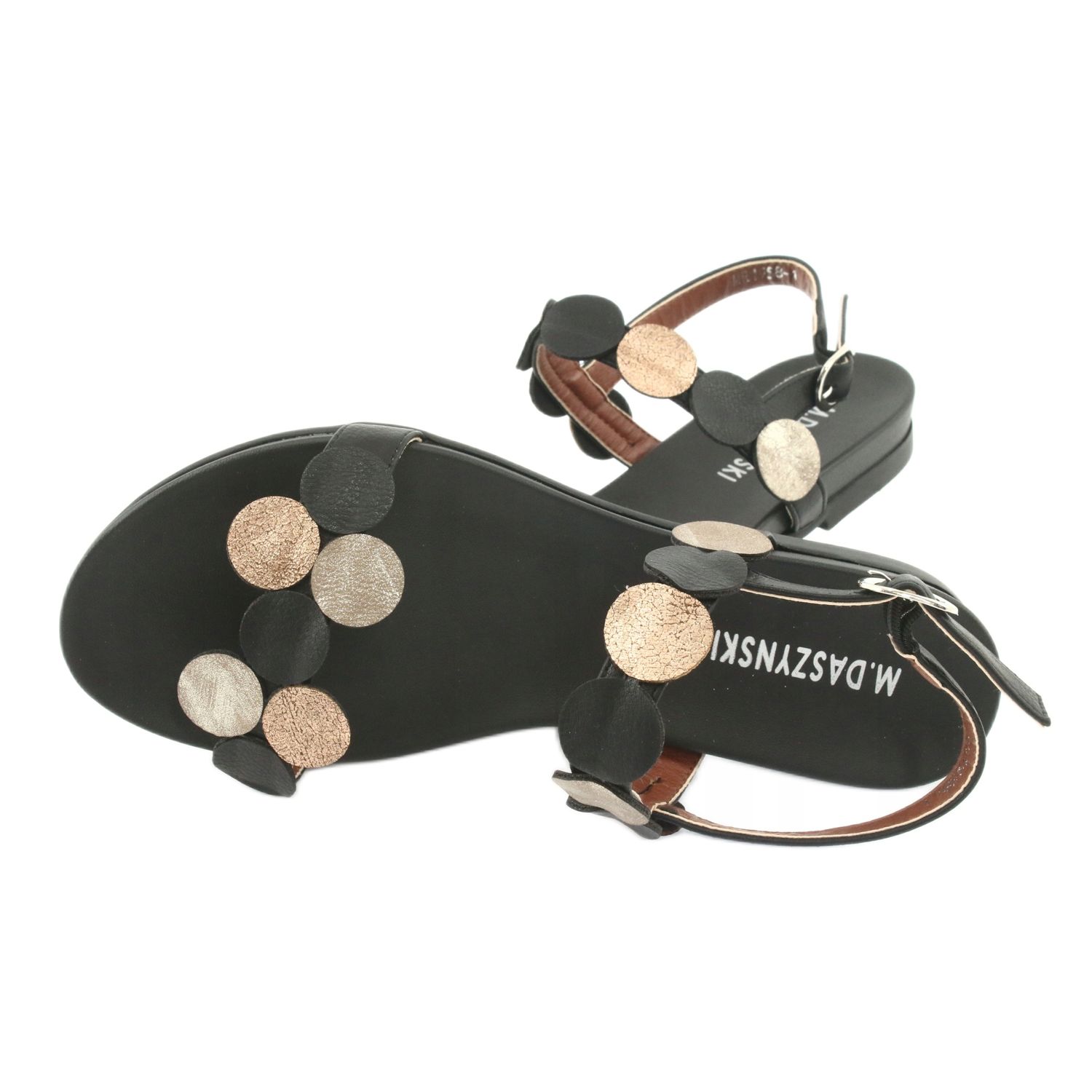 M.Daszyński M.Daszyński Czarne Sandały złote kółka Daszyński MR1958-1 żółte