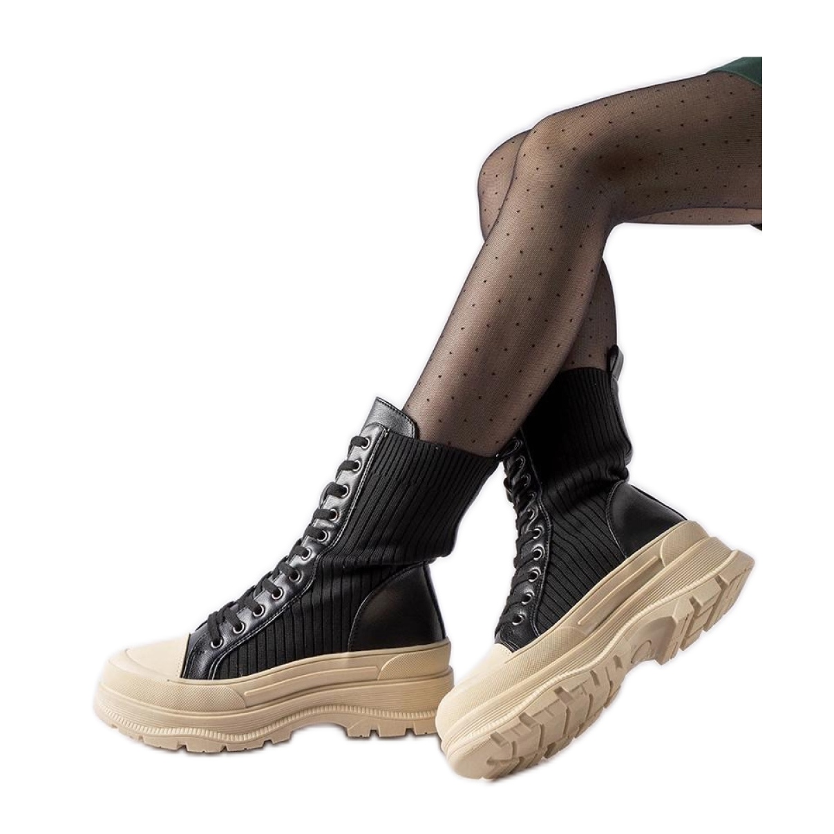 Inna marka Czarne skarpetowe botki jasna podeszwa