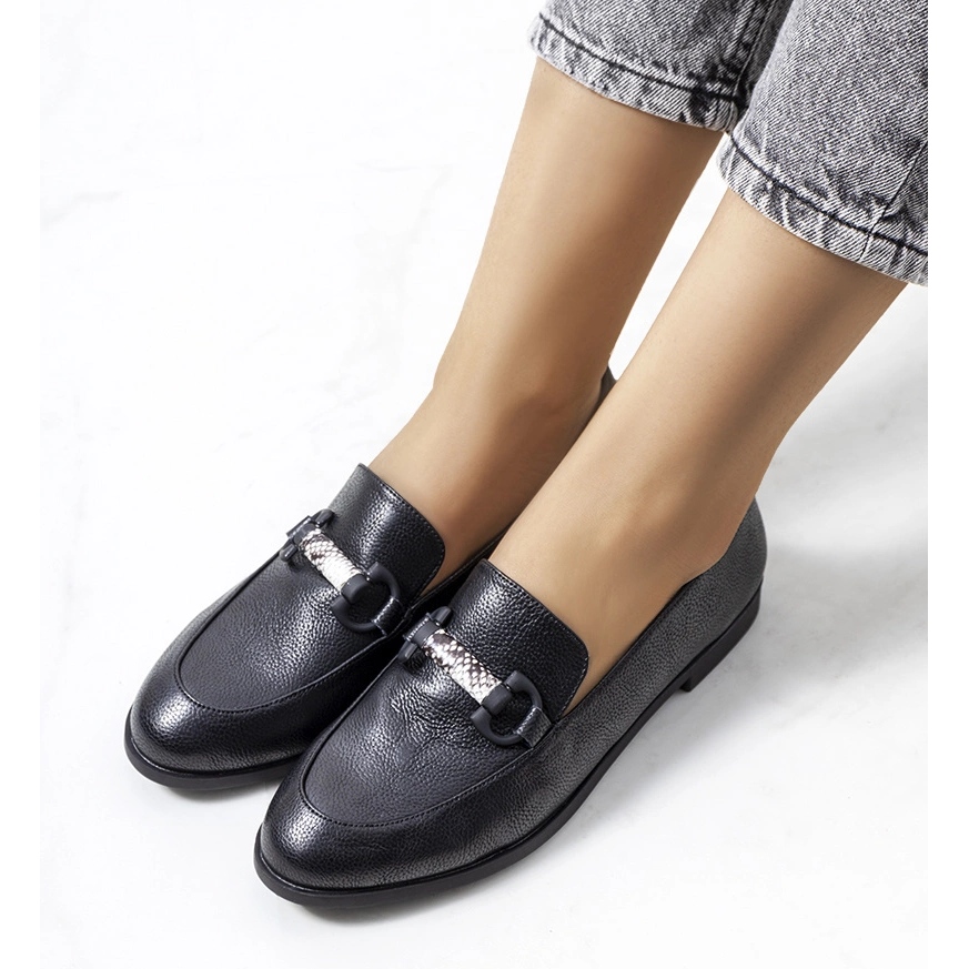 Klasyczne półbuty damskie wykonane z naturalnej skóry, które doskonale komponują się zarówno z codziennymi, jak i bardziej eleganckimi stylizacjami. Migdałowy nosek optycznie wyszczupla stopę, a dekoracyjny łańcuch dodaje subtelnego charakteru. Cholewka i wkładka ze skóry naturalnej zapewniają komfort, dobrą wentylację i trwałość.