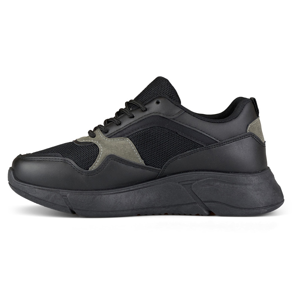 Czarne sneakersy damskie z kolekcji ButyModne to połączenie ekologicznej skóry i materiałów tekstylnych, które zapewniają nowoczesny, minimalistyczny wygląd oraz komfort noszenia. Niskie, sznurowane buty na subtelnej platformie (2 cm) doskonale sprawdzą się w sezonie wiosna/lato jako baza codziennych stylizacji.