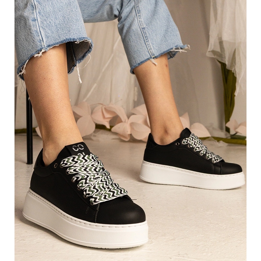 Szczegóły: Czarne sneakersy damskie z masywnym sznurowaniem=