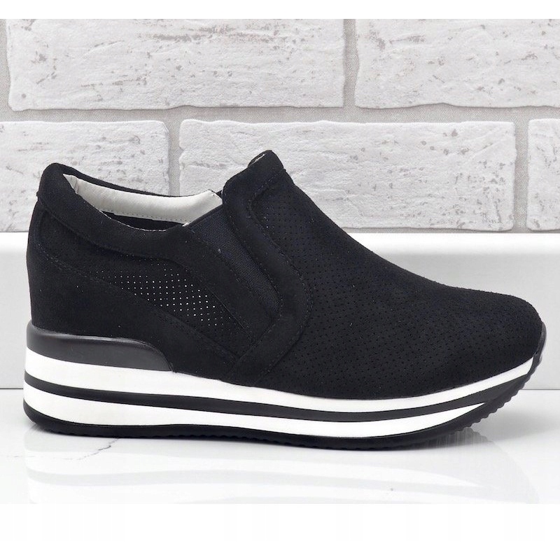 Inna marka Czarne sneakersy na koturnie ażurowe RQ259