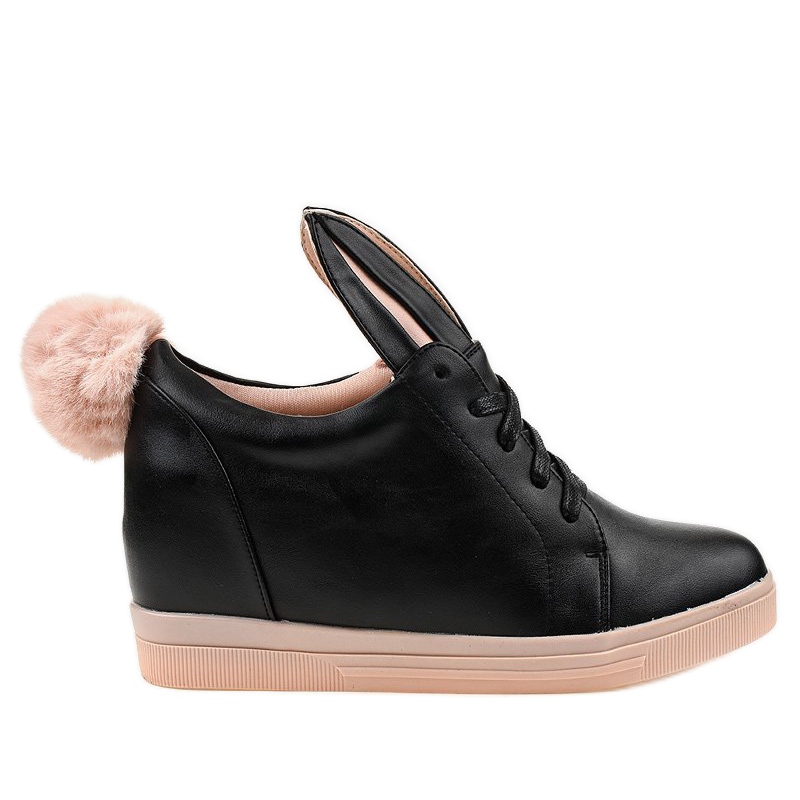 Inna marka Czarne sneakersy na koturnie króliczki H6210