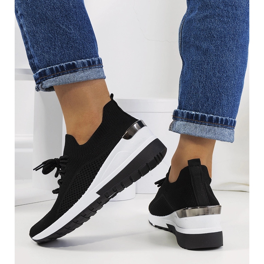Inna marka Czarne sneakersy na koturnie Sabelia