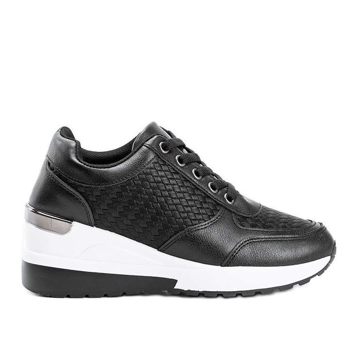 Inna marka Czarne sneakersy na koturnie z plecionym wzorem Dianne