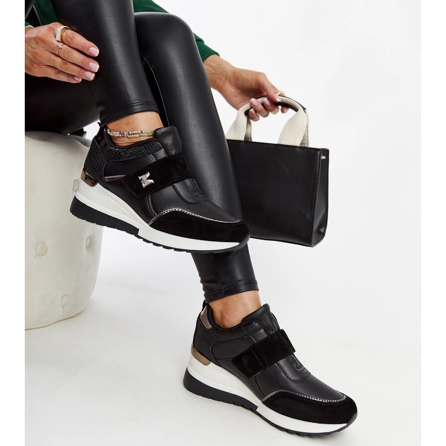 Szczegóły: Czarne sneakersy na koturnie zapinane na rzepy Libuse