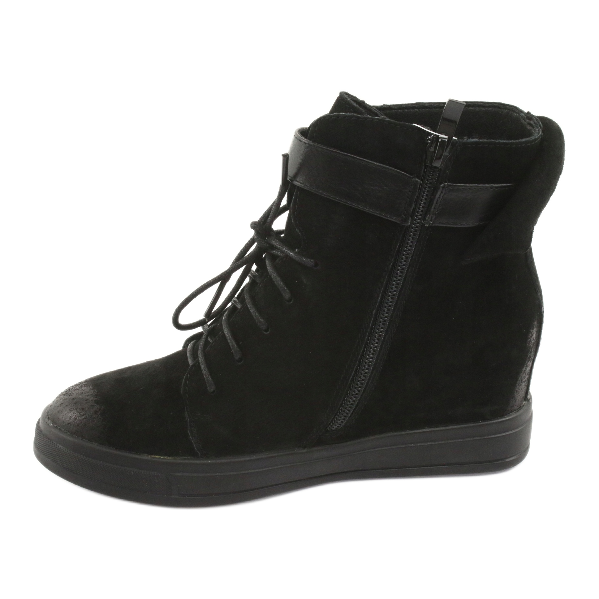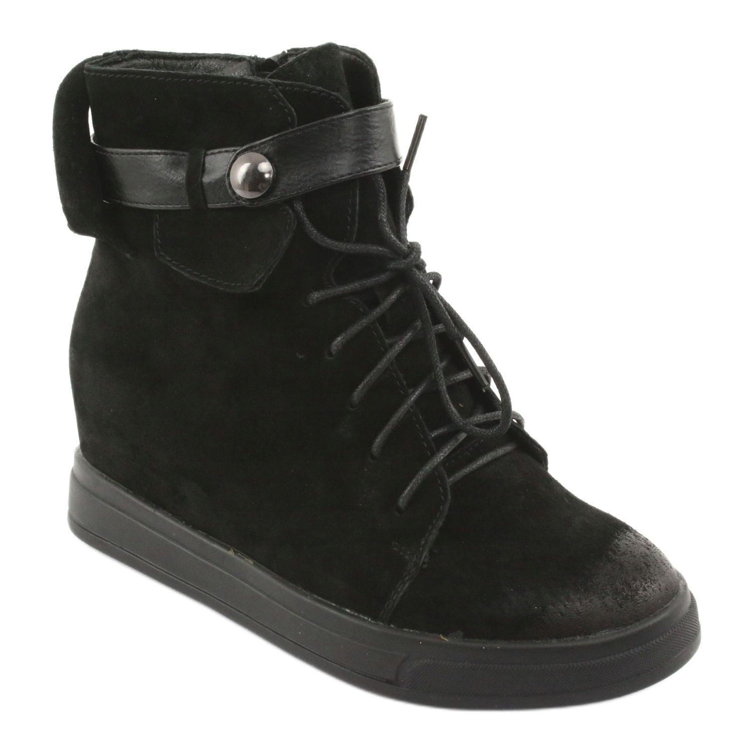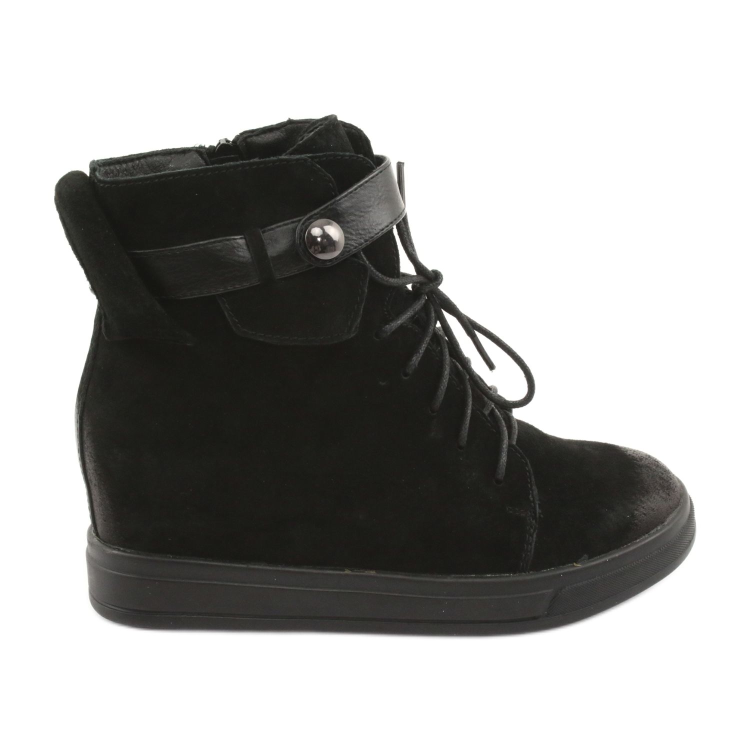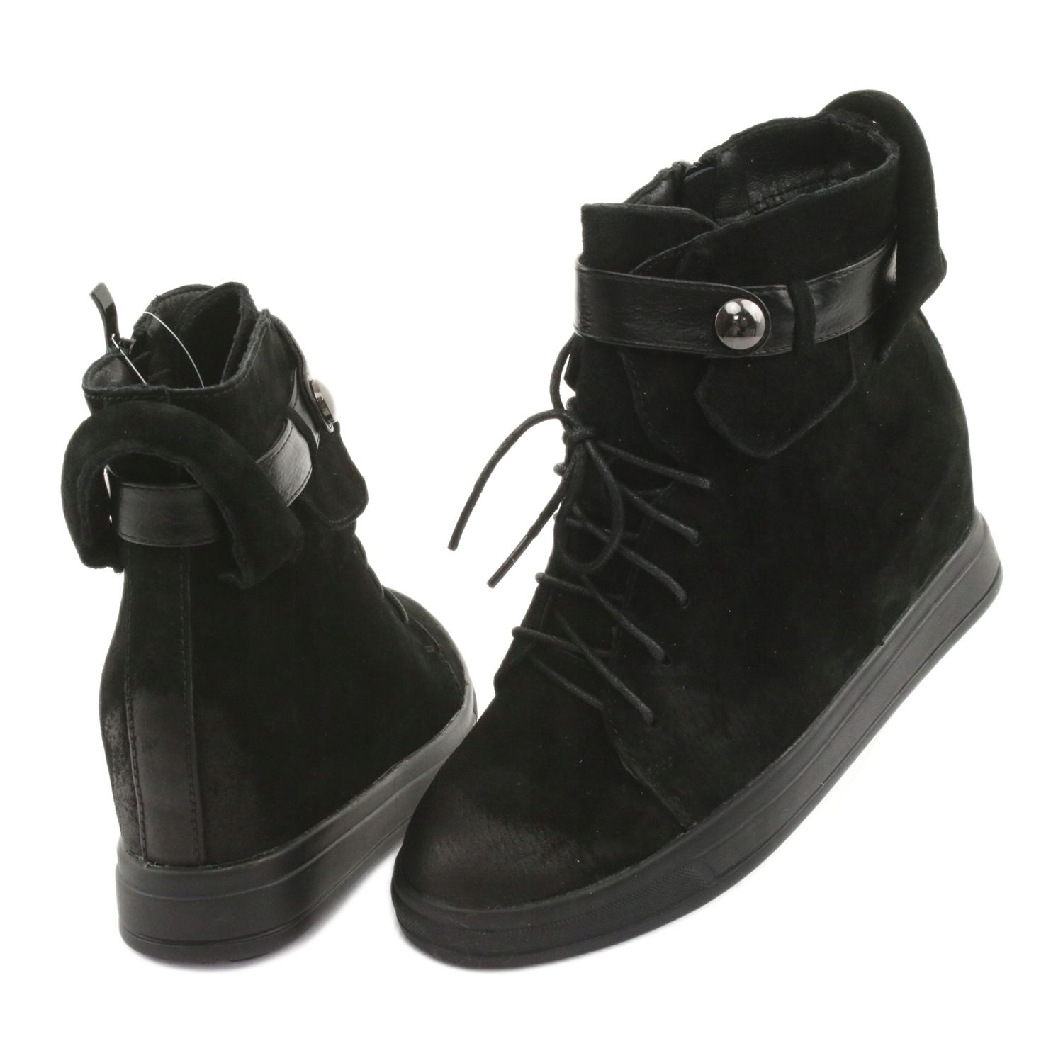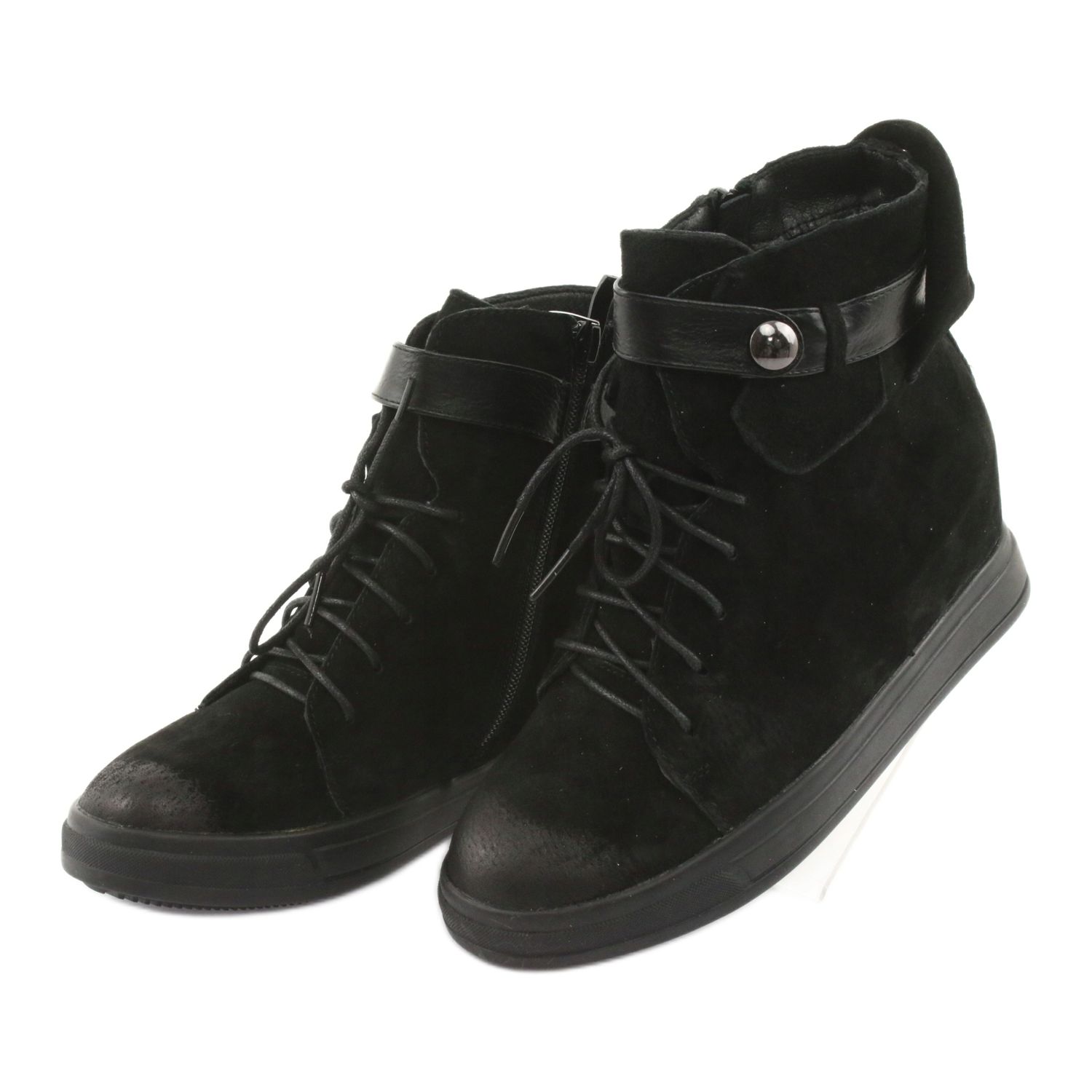 Ich czarna skóra zamszowa, zdobiona subtelnymi ozdobami na paskach, przyciąga wzrok i dodaje klasy każdej chwili. Sneakersy są nie tylko estetyczne, ale również funkcjonalne – zapięcie na suwak umożliwia szybkie i łatwe wkładanie, a sznurówki pozwalają na indywidualne dopasowanie tęgości.