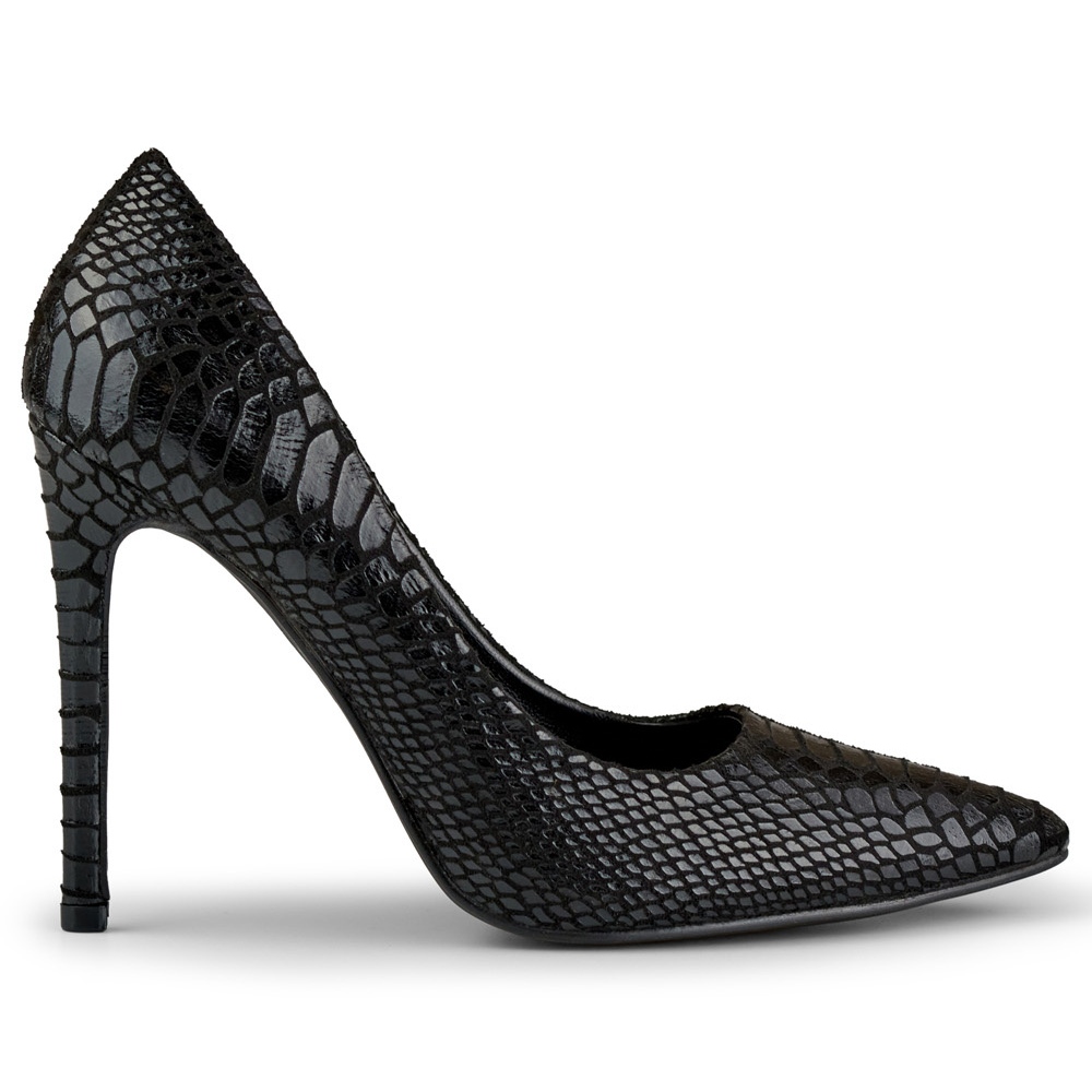 Starannie wykonane i świetnie prezentujące się na nodze, czarne szpilki z delikatnym wzorem są obuwiem gotowym na wielkie wyjścia, spotkania biznesowe lub inne szczególne okazje, gdy chcemy poczuć się wyjątkowo i elegancko. Wysokość obcasa zapewni piękną sylwetkę i wydłuży nogi, a klasyczny czarny kolor ułatwi dopasowanie ich do różnorodnych kreacji.