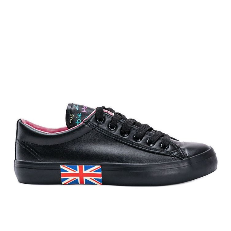 Czarne trampki damskie Eagles to idealny wybór dla kobiet poszukujących połączenia stylu i wygody. Wykonane z wysokiej jakości skóry ekologicznej, te buty nie tylko prezentują się świetnie, ale również dbają o środowisko. Język trampków zdobiony kolorowymi napisami dodaje im unikalnego charakteru, a miniaturowa flaga na podeszwie to subtelny akcent, który wyróżnia ten model na tle innych.