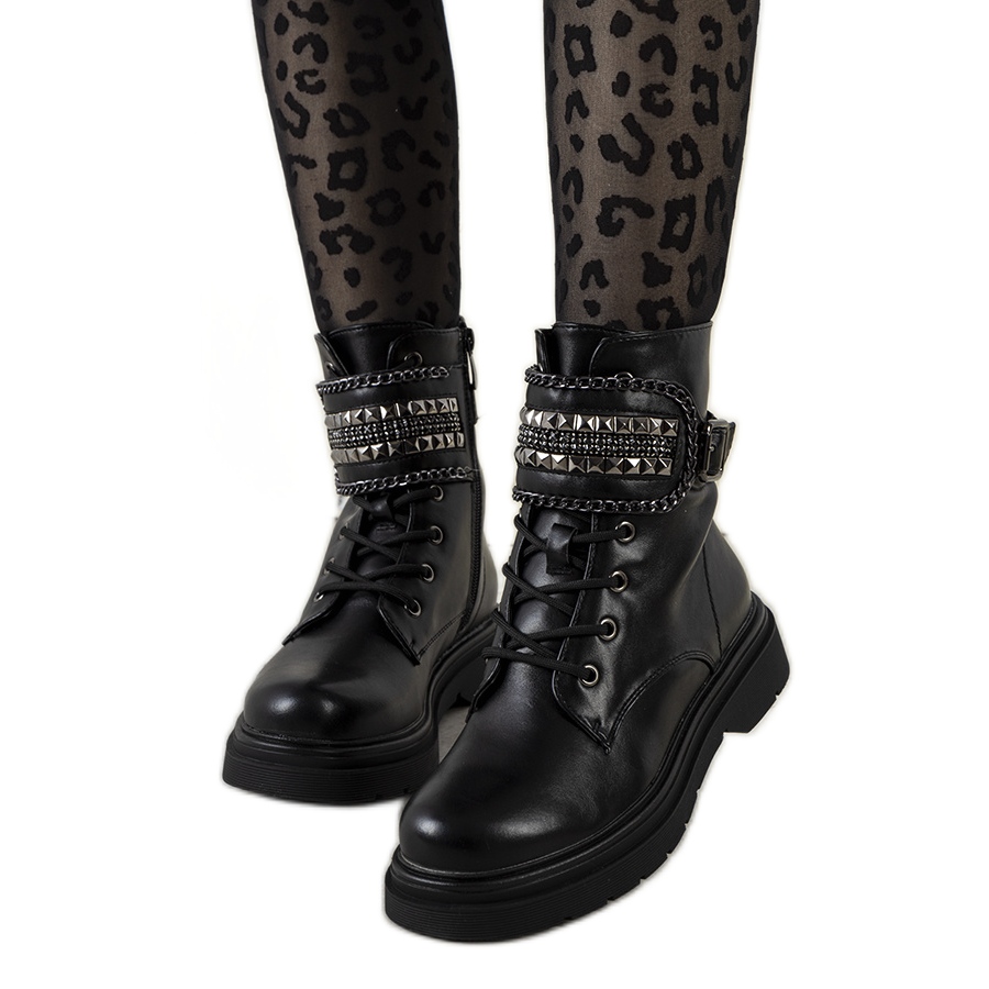 Botki Avenida wyróżniają się okrągłym noskiem oraz szeroką platformą o wysokości 4 cm, co dodaje im niepowtarzalnego charakteru. Dodatkowo, modne ćwieki stanowią interesujący akcent, który podkreśli Twoją indywidualność. Zamek błyskawiczny oraz sznurowane zapięcie to praktyczne rozwiązania, które ułatwiają ich zakładanie i dopasowanie do stopy.