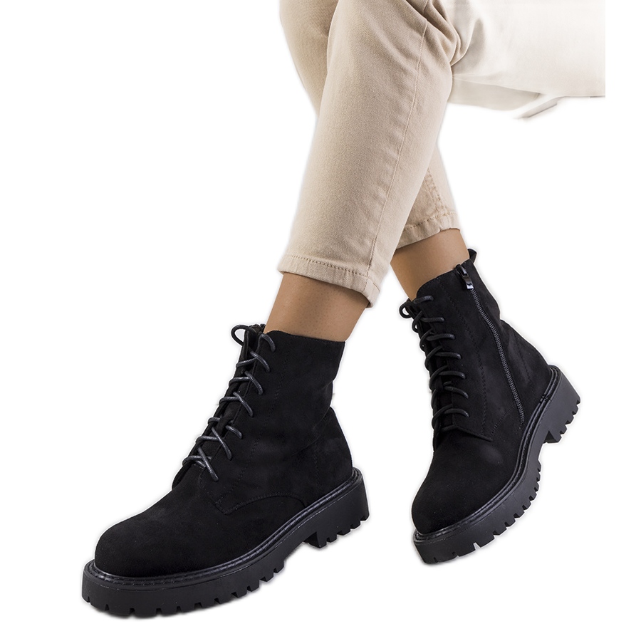 Czarne traperki Londri — stylowe i praktyczne botki na chłodne dni