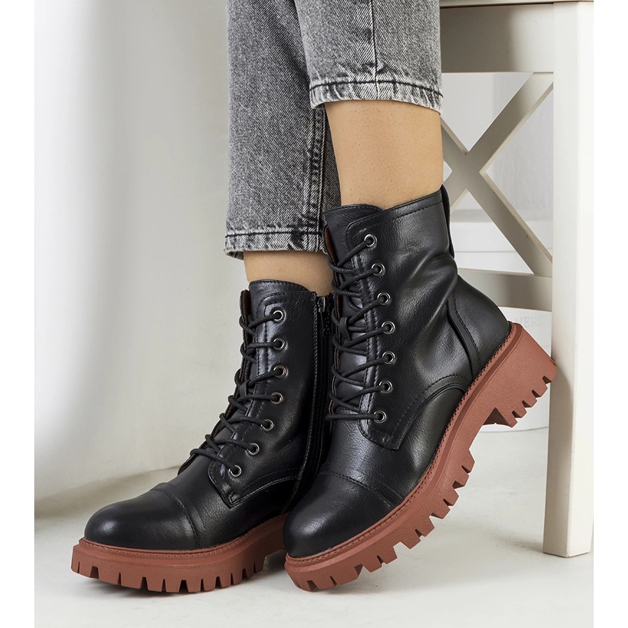 Inna marka Czarne traperki na brązowej podeszwie Rukit
