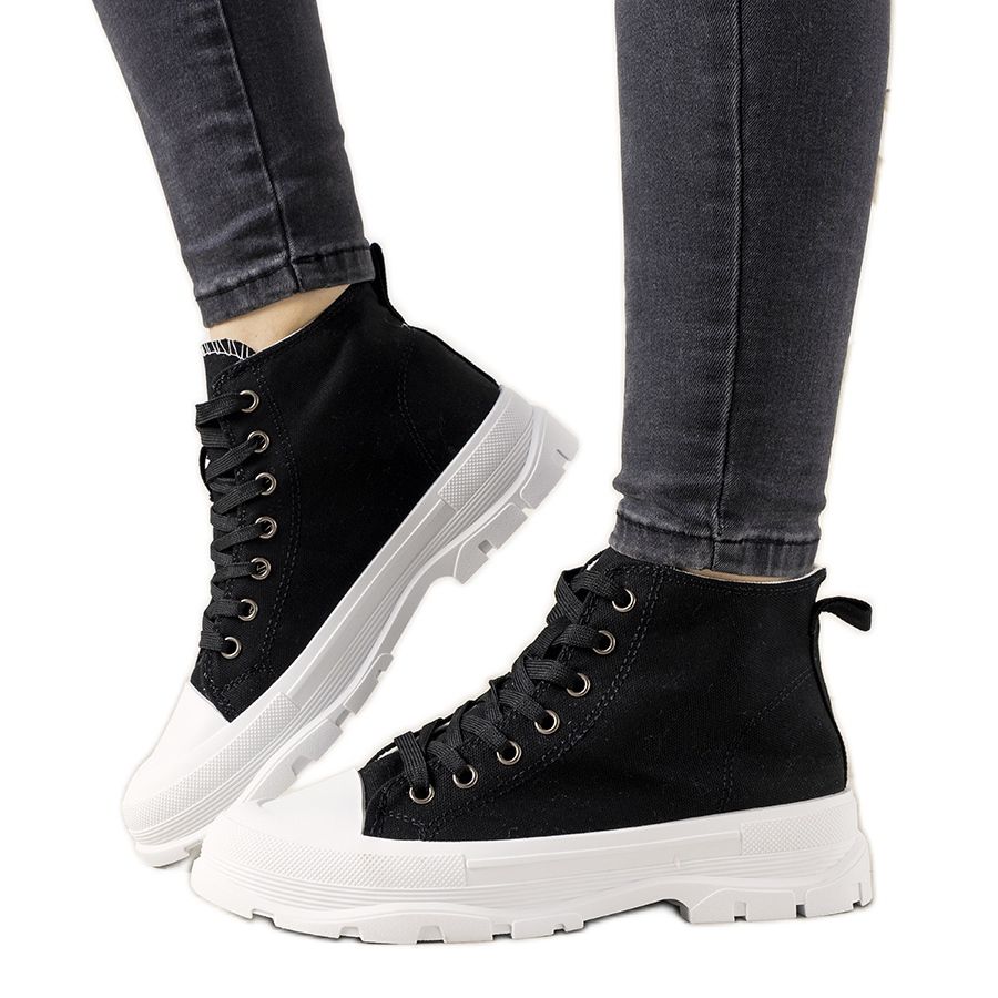 Inna marka Czarne traperki trampki damskie Sanabria