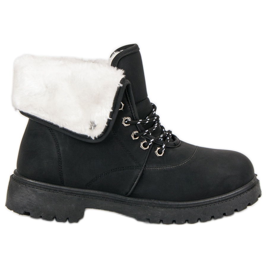Przedstawiamy czarne traperki z futerkiem, które idealnie wkomponują się w Twoją jesienno-zimową garderobę. Te casualowe buty na 3,5 cm obcasie oraz 1,5 cm platformie to doskonałe połączenie stylu i komfortu. Wykonane z wysokogatunkowej skóry ekologicznej w eleganckim czarnym kolorze, traperki charakteryzują się ciekawie skrojoną cholewką wykończoną białym futerkiem, które dodaje im uroku.
