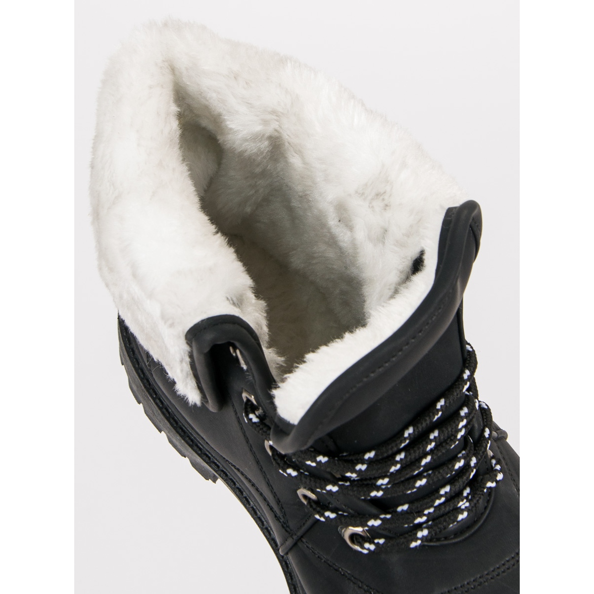 Dzięki ociepleniu i futrzanej wkładce, te buty zapewniają odpowiednią temperaturę podczas chłodniejszych dni, a ich gruba, bieżnikowana podeszwa gwarantuje stabilność i wygodę noszenia. Zapięcie na sznurowadła pozwala na precyzyjne dopasowanie do stopy, co podnosi komfort użytkowania. Okrągły nosek i wysoka cholewka skutecznie chronią kostkę przed zimnem.