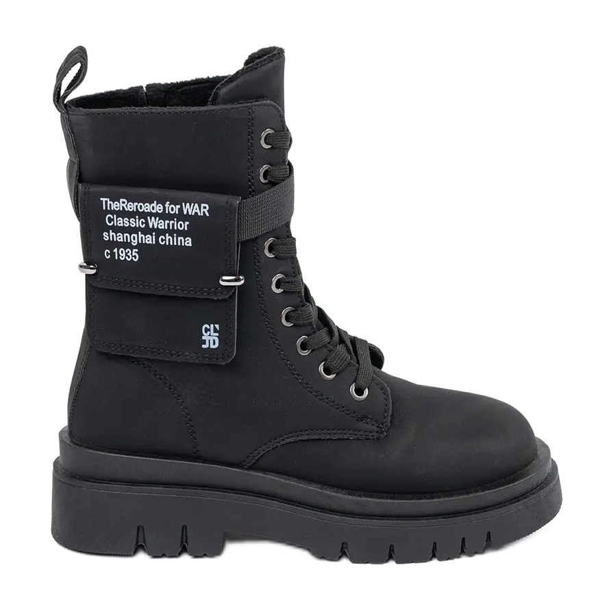 Szczegóły: TRENDI Czarne traperki z kieszonką
