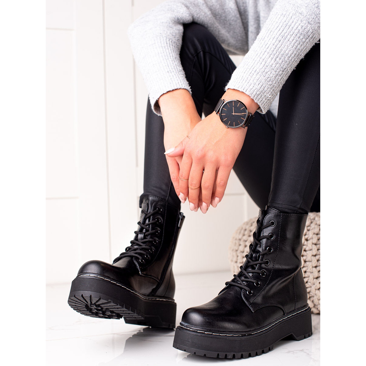 Odkryj styl i wygodę z czarnymi trapery na platformie od marki Evento! Te modowe botki to idealny wybór na jesień i zimę, łącząc casualowy styl z nowoczesnym designem. Wykonane z wysokiej jakości skóry ekologicznej, zapewniają nie tylko estetykę, ale także trwałość.