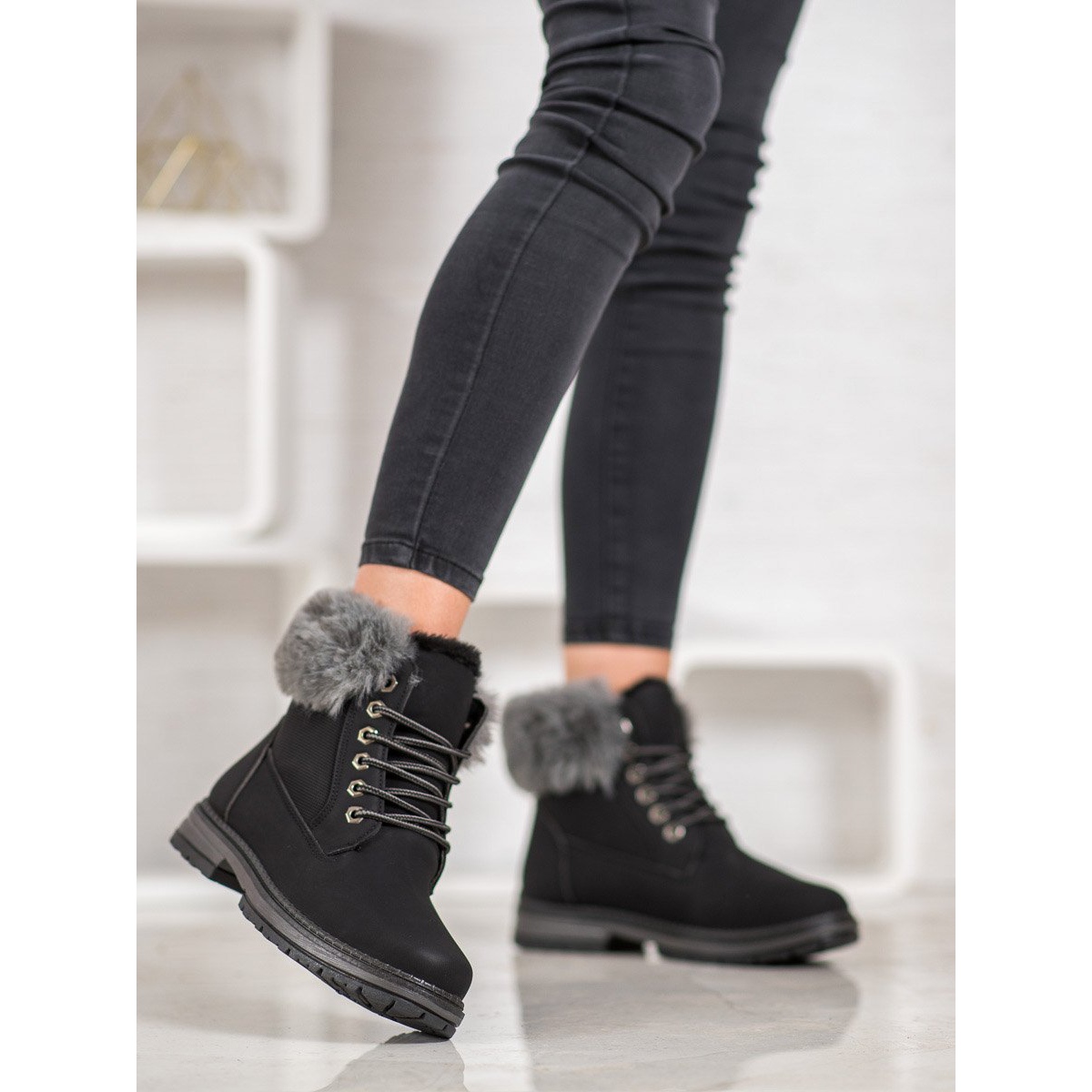 SHELOVET SHELOVET Czarne Trapery Z Futerkiem
