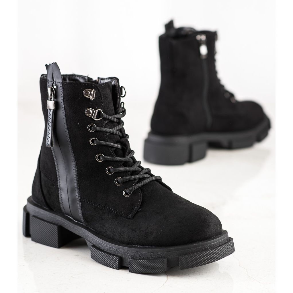 Wykonane z wysokiej jakości imitacji zamszu, trapery charakteryzują się trwałością i atrakcyjnym wyglądem. Ozdobny suwak dodaje im charakteru, sprawiając, że z łatwością wkomponują się w casualowy styl każdej kobiety. Dzięki zapięciu na zamek oraz dodatkowym sznurowaniu, obuwie jest łatwe w zakładaniu i idealnie dopasowuje się do stopy.