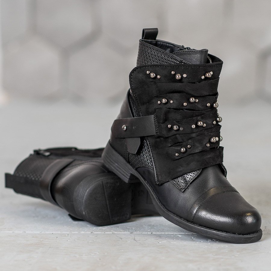 Workery wyróżniają się licznymi dżetami, które nadają im wyrazistego charakteru i sprawiają, że będą idealnym uzupełnieniem dla odważnych stylizacji. Zabudowany i miękki zapiętek zapewnia wygodę podczas noszenia, a syntetyczna podeszwa z bieżnikiem gwarantuje dobrą przyczepność, co jest szczególnie istotne w chłodniejsze dni.