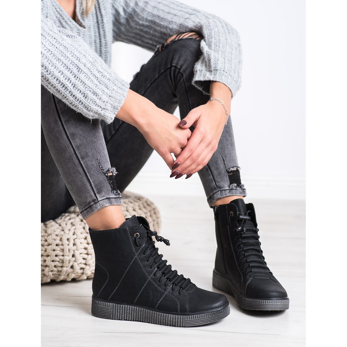Szczegóły: SHELOVET Czarne Workery Na Paltformie