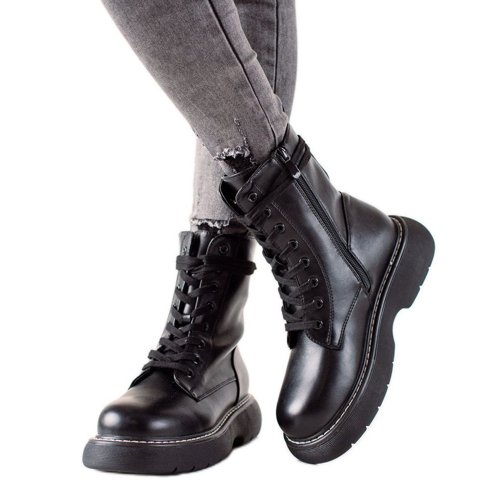 Ich zabudowany, miękki zapiętek oraz ocieplenie sprawiają, że są to buty idealne na jesień i zimę. Platforma o wysokości 3 cm oraz płaski obcas z wysokością 5 cm gwarantują komfort noszenia, nawet w chłodniejsze dni. Cechy takie jak okrągły nosek i zamek błyskawiczny w połączeniu z sznurowaniem sprawiają, że buty są nie tylko funkcjonalne, ale również atrakcyjne.