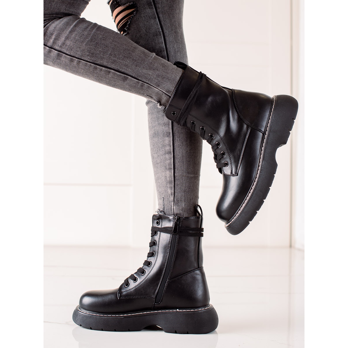Odkryj nowe oblicze stylu z czarnymi workerami na platformie od marki TRENDI. Te eleganckie botki to idealna propozycja dla kobiet szukających połączenia wygody z modnym designem. Wykonane z wysokiej jakości imitacji skóry, zapewniają trwałość i estetyczny wygląd, który doskonale wpisuje się w casualowy styl na co dzień.