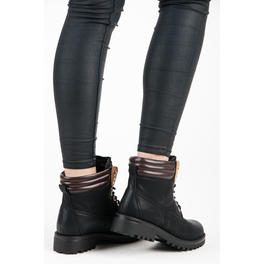 Czarne workery Super Mode charakteryzują się sznurowanym zapięciem, co pozwala na idealne dopasowanie do stopy. Wnętrze wypełnione tkaniną zapewnia miękkość i wygodę, a syntetyczna podeszwa gwarantuje doskonałą przyczepność na różnych nawierzchniach.