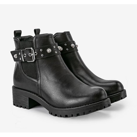 Inna marka Czarne workery z klamrą i perełkami Odys