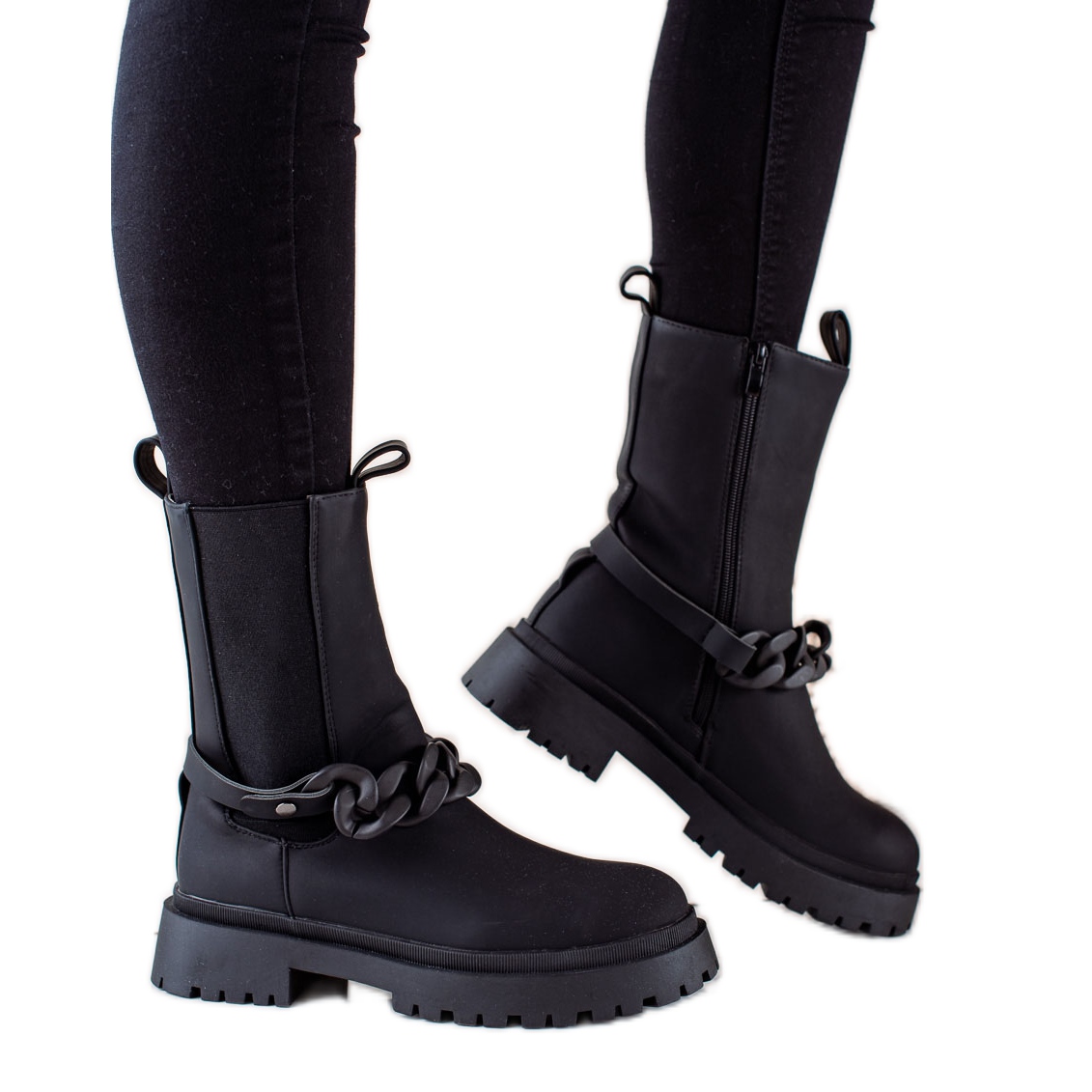 TRENDI TRENDI Czarne Workery Z Ozdobnym Paskiem