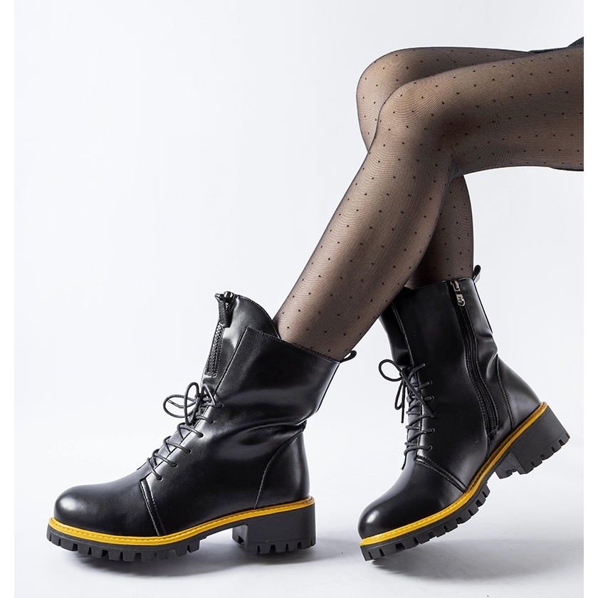 Szczegóły: Czarne workery z żółtym zdobieniem Elisabetta