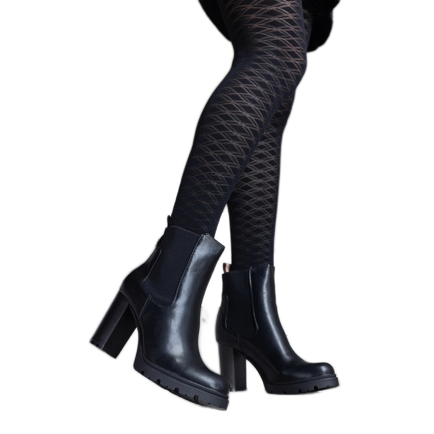 Szczegóły: Czarne wsuwane botki na słupku z eko-skóry Motena
