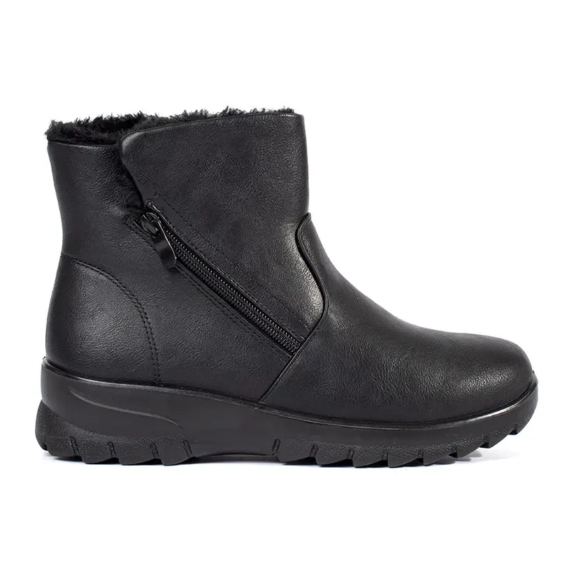 Szczegóły: Czarne wygodne ocieplane botki damskie
