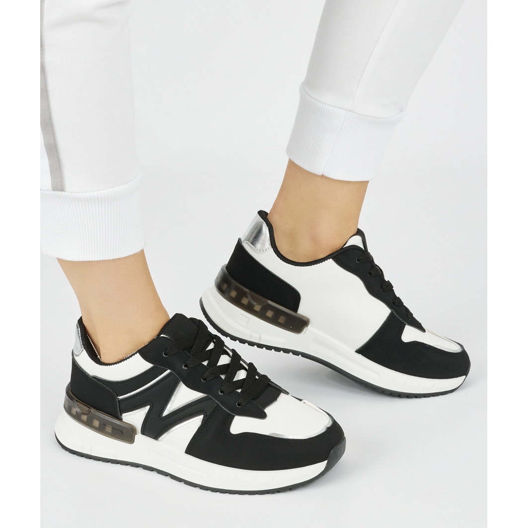 Szczegóły: Czarne wygodne sneakersy damskie białe