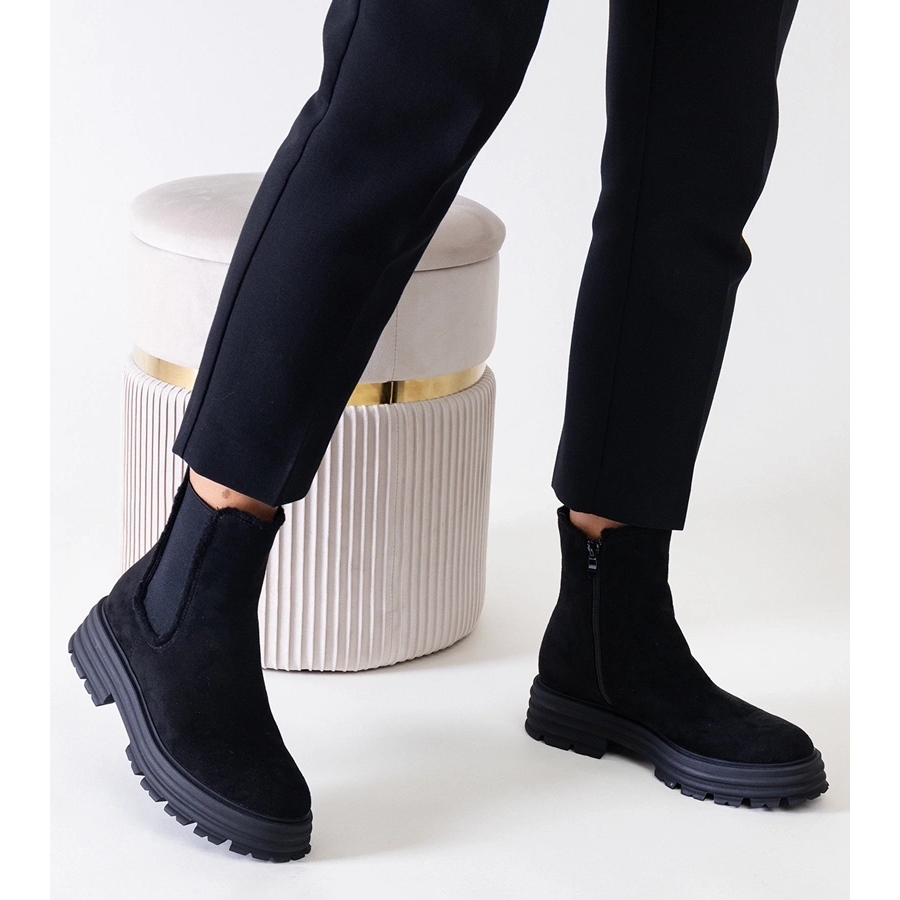 Szczegóły: Czarne wysokie botki na grubej platformie eko-zamsz Sabra