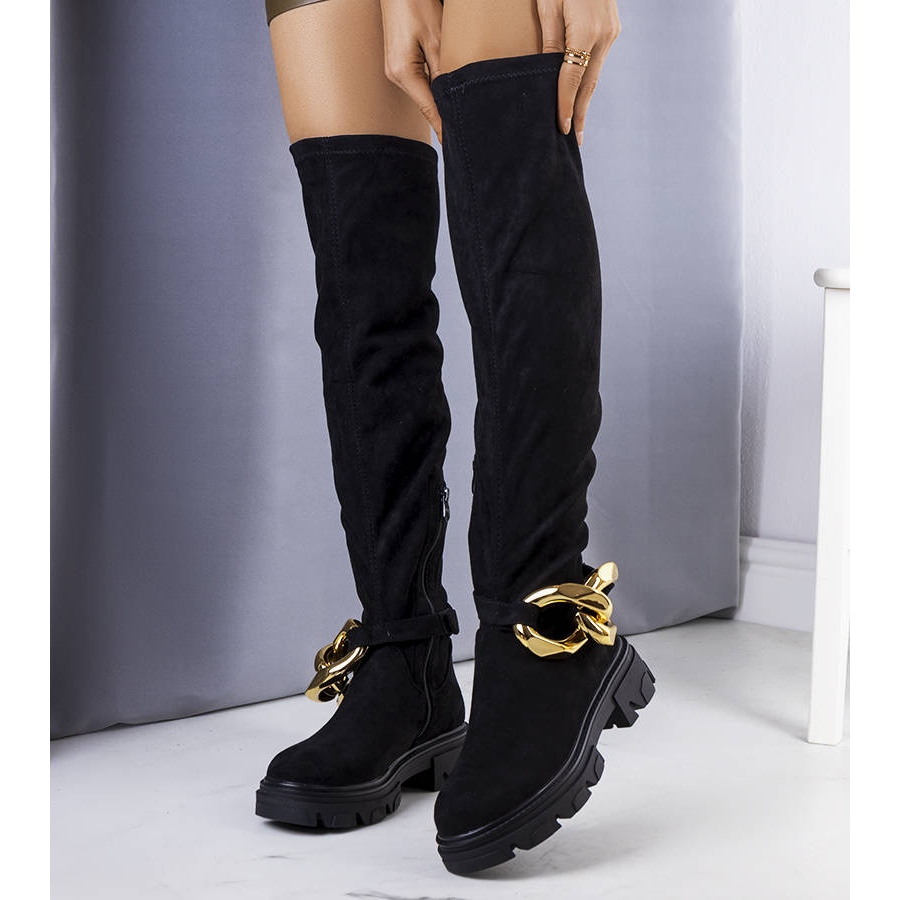 Dopasowana cholewka pięknie podkreśla kształt nóg, a zastosowanie paska z łańcuchem, zapinanego na rzep, dodaje całości wyjątkowego charakteru. Wnętrze w okolicy stopy zostało wykończone ciepłym futerkiem, co sprawia, że kozaki są idealne na chłodniejsze dni.