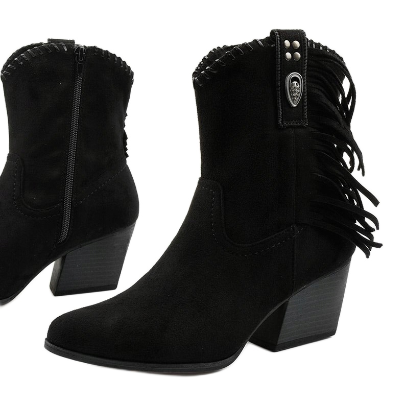 Inna marka Czarne zamszowe botki kowbojki Lamimeila