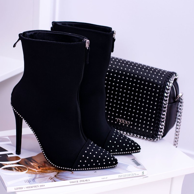 Szczegóły: BUGO Czarne Zamszowe Botki na Szpilce Regio